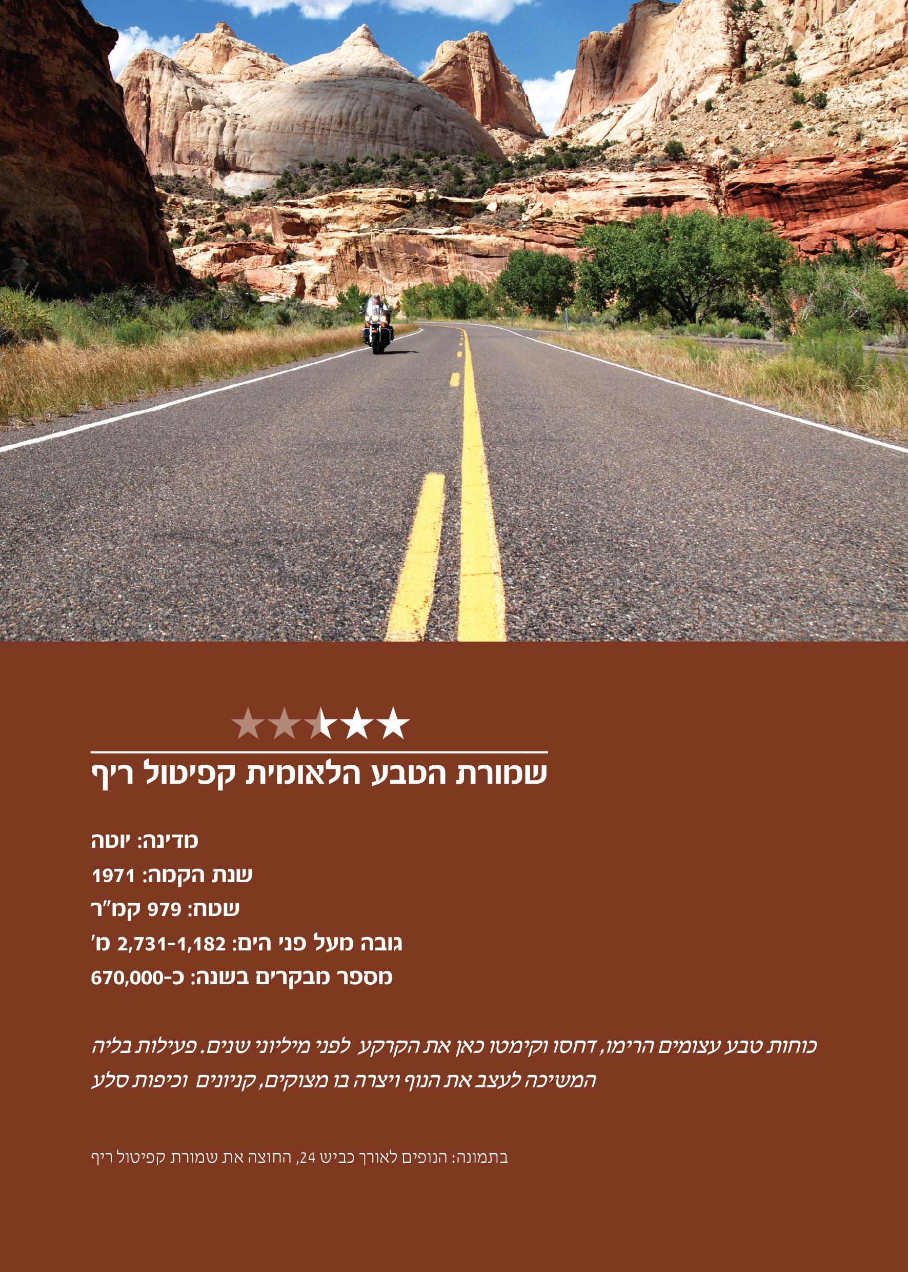 קובץ זה כולל את כל המידע שתזדקקו לו בעת הטיול בשמורת הטבע הלאומית קפיטול ריף: