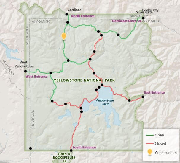 מצב פתיחת כבישים בשמורת הטבע הלאומית ילוסטון
