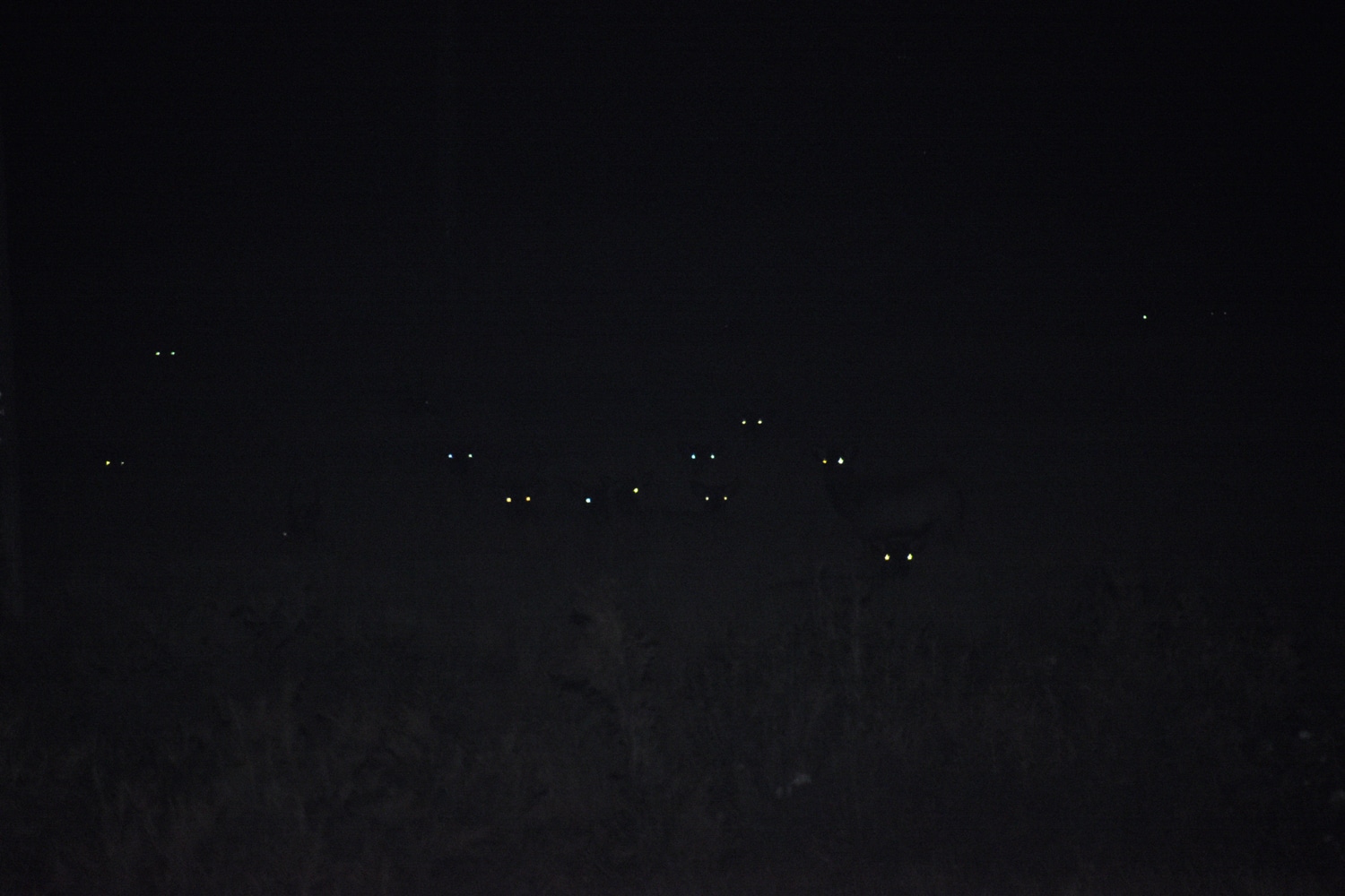 בלילה, בסיור לילה בחיפוש אחרי בעלי חיים, יובל צילם הרבה עיניים. כנראה של איילים (או של אנטילופות אמריקניות). צילם: יובל דגני