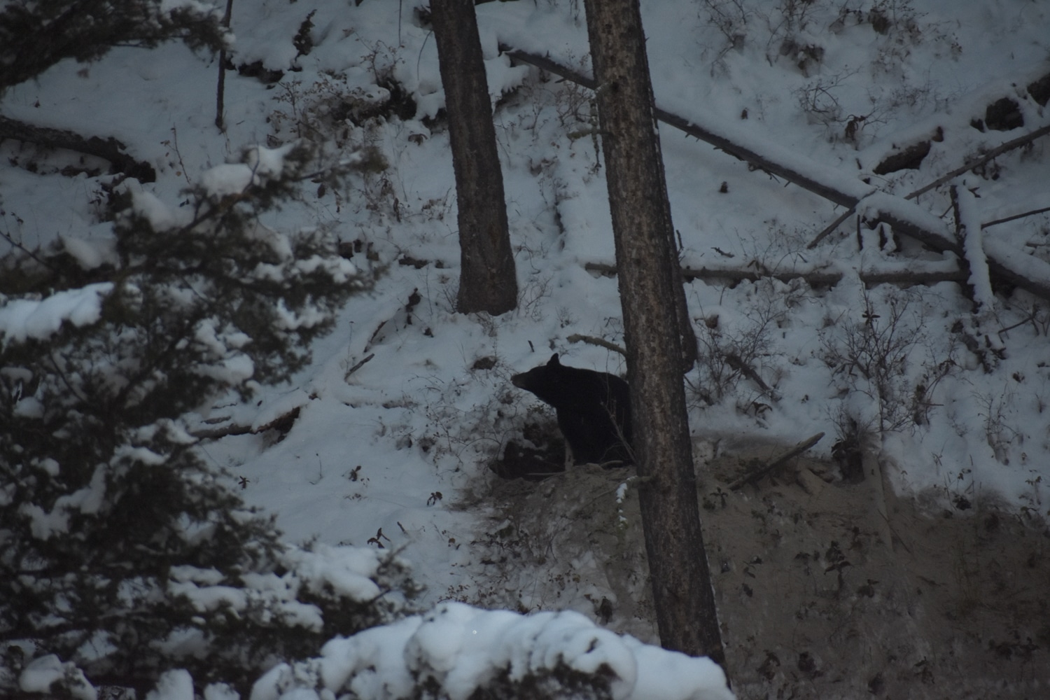 לקראת ערב עומר או יובל (לא זוכרת מי) זיהו על המדרון דוב שחור שהציץ לרגע מהמאורה שלו ואחרי כמה דקות נעלם חזרה לתוכה, צילם: יובל דגני