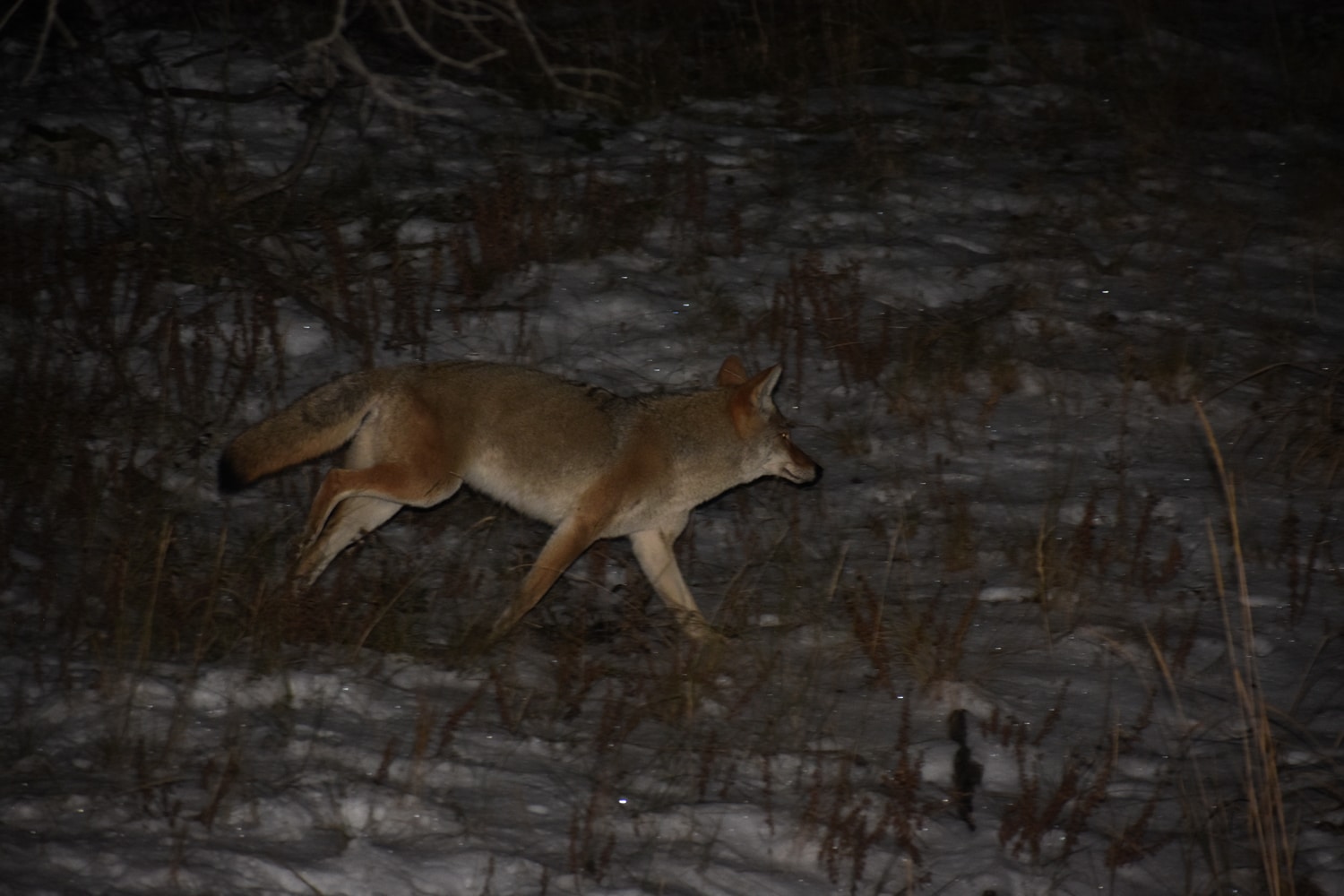 בחשכה – המזל המשיך לשחק לנו, קויוט בריא ופעיל רץ לצד הכביש, צילם: יובל דגני
