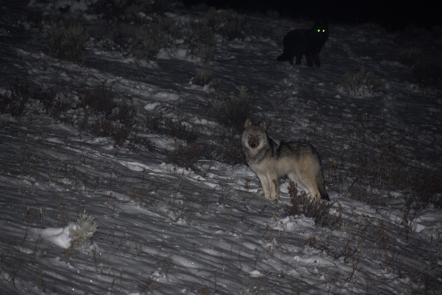 להקה של זאבים בין שני צדי הכביש (שמיותר לציין ריק ממכוניות בשעות הלילה) ואנחנו בטווח. ראינו אותם משחקים, שמענו אותם מיללים. ירח מלא האיר את השמיים והשלג החזיר את האור. קסום. לראות כל כך מקרוב זאבים בילוסטון היה לא פחות מהתגשמות חלום, צילם: יובל דגני כמובן
