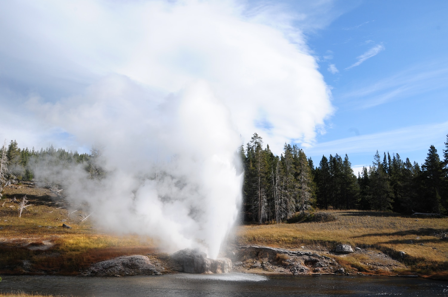 ריברסייד גייזר. מתפרץ ליד הנהר
