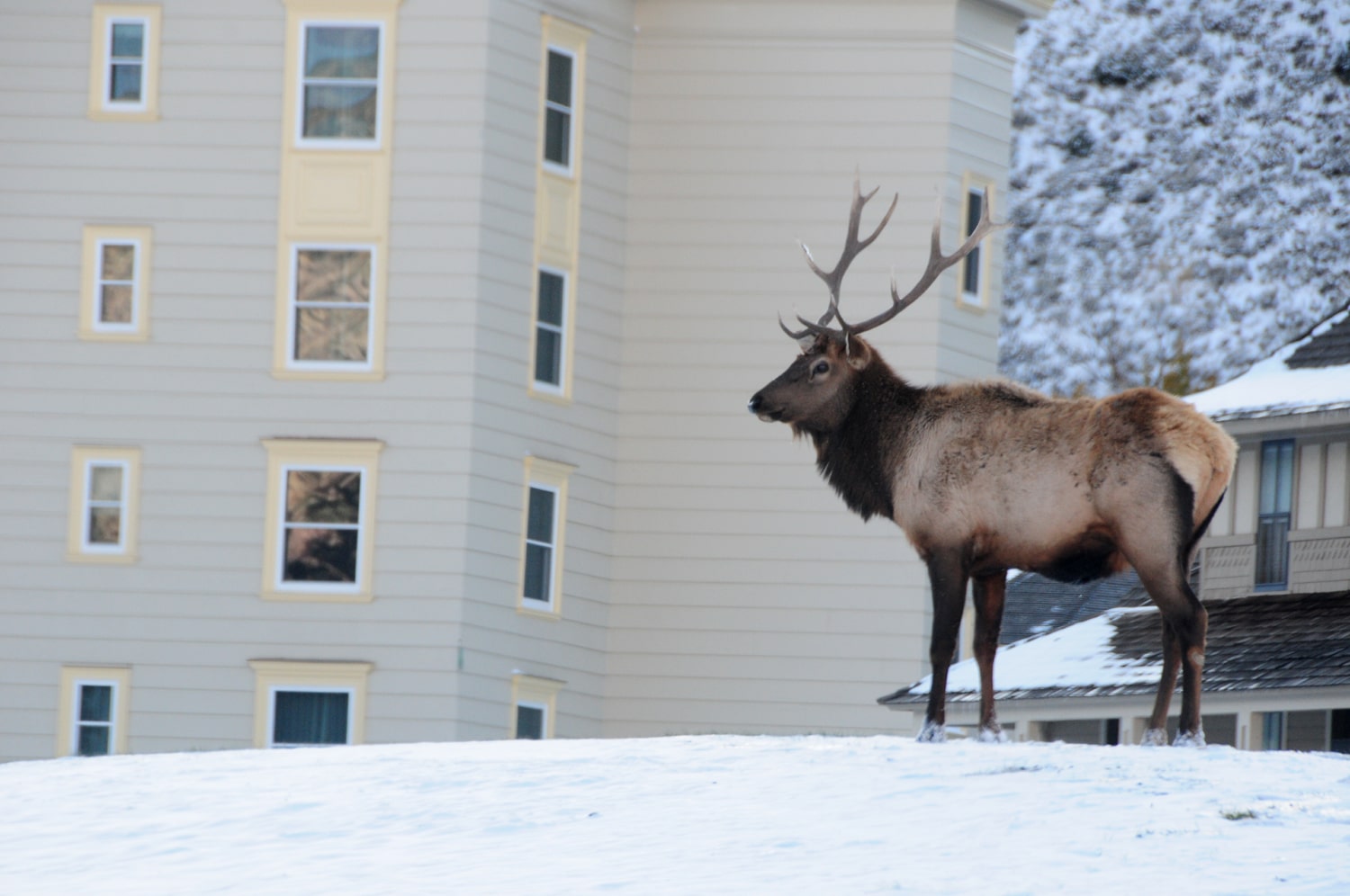 המשך – אז הצלחנו לצאת מהחניון ולנסוע באיטיות לווסט ילוסטון. ביציאה מהשמורה ראינו שהכניסה אליה נחסמה. בחוץ ירד שלג כבד וכבישי העיירה נראה שנקברו תחת המעטה הלבן שהגיע מוקדם מהצפוי לעונה והפתיע גם את המקומיים… עשינו צק אין מוקדם למלון (Days Inn, המלון הכי זול שמצאתי שנראה סביר והאמת – ממש סבבה, כולל מגלשת מים קטנה ושני ג'קוזי ואחלה חדרים), התקלחנו במים חמים (איזה כיף) ונסעו לאכול ארוחת בוקר/צהרים במסעדה היחידה בעיירה שהייתה פתוחה ושנראה בתפריט שיש בה לפחות מנה אחת טבעונית (בוריטו עם אורז ושעועית וכמובן צ'יפס). אני (שלא טבעונית) דווקא רציתי להזמין המבורגר ביזון אבל מהמבטים שעומר הביט בי הבנתי שעדיף לוותר. התפריט שכולל איילים וביזונים פלוס הפוחלצים הרבים גררו ביקורת מעומר ומיובל על בחירת המסעדה.
