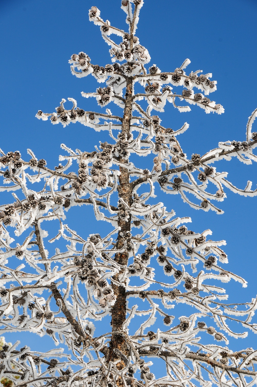 אדי המים קפאו כקרח על ענפי העצים