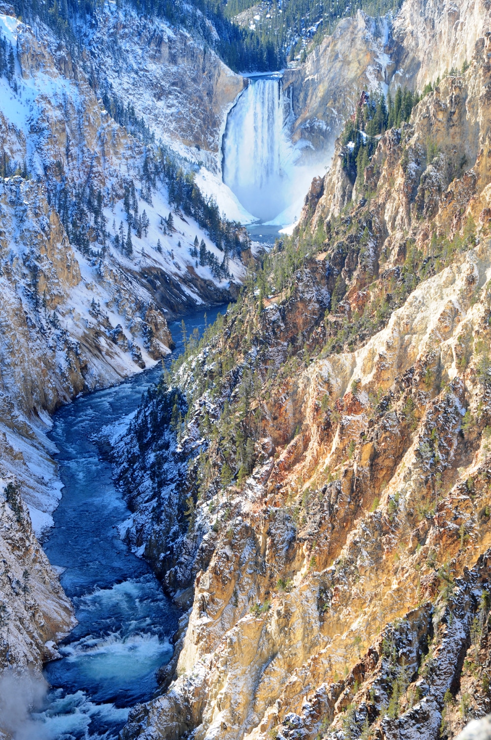 לאחר הביקור במעיינות המשכנו לגרנד קניון של הילוסטון. תמונה של המפל התחתון של קניון מרהיב זה מעטרת את כריכת הספר שלי על מערב ארה"ב – https://bit.ly/2FgrFaw (שעידכונו – מהדורה 4 – הוא אחת הסיבות לנסיעה הזו שלי לארה"ב). מראה המפל בשלג היה יפה במיוחד.