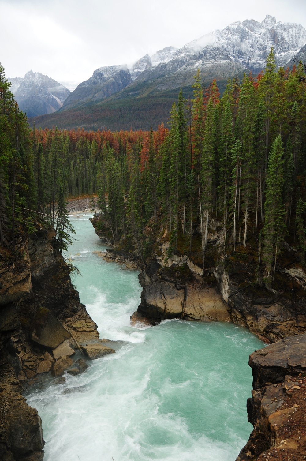 הבוקר התחיל בנסיעה מהינטון, העיירה בה ישנו שממוקמת ממזרח לג'אספר, אל ג'אספר. אתמול נסענו בדרך הזו מזרחה והיום מערבה ותכלס הדרך כל כך יפה שקשה לי לומר איזה כיוון נסיעה עדיף. הכל ממש overwhelming (מילה שאני לא חושבת שיש לה תרגום של ממש בעברית המתאימה לכאן) מרוב יופי, ובעיקר עכשיו כשצבעי השלכת במלוא הדרם. בדרך פגשנו באמא כבש הרים ובגור שלה שהילכו על הכביש, ולאחר מכן, קרוב לג'אספר ראינו שוב את האיילים הקנדיים מתרוציים בעצבנות רבה ואנשים שעומדים הרבה יותר מדי קרוב ומנסים לצלם אותם.