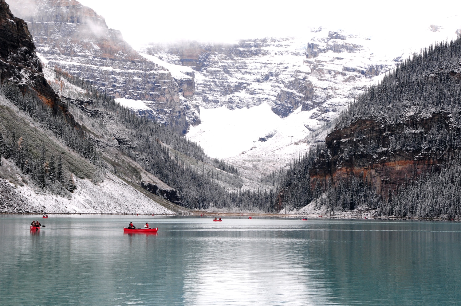 כשעה לאחר מכן הגענו ללייק לואיז ובמזל גדול מצאנו חניה סמוך לאגם ולא במרחק שאטל נסיעה ממנו. הפעם האחרונה בה ביקרתי באגם לואיז הייתה לפני למעלה מ-10 שנים ואין ספק שהאגם היפה הזה, שהוא יעד עליה לרגל של כל מי שמבקר ברוקיס, הפך לאתר שאפילו בסוף חודש ספטמבר עמוס תיירים באופן קיצוני.