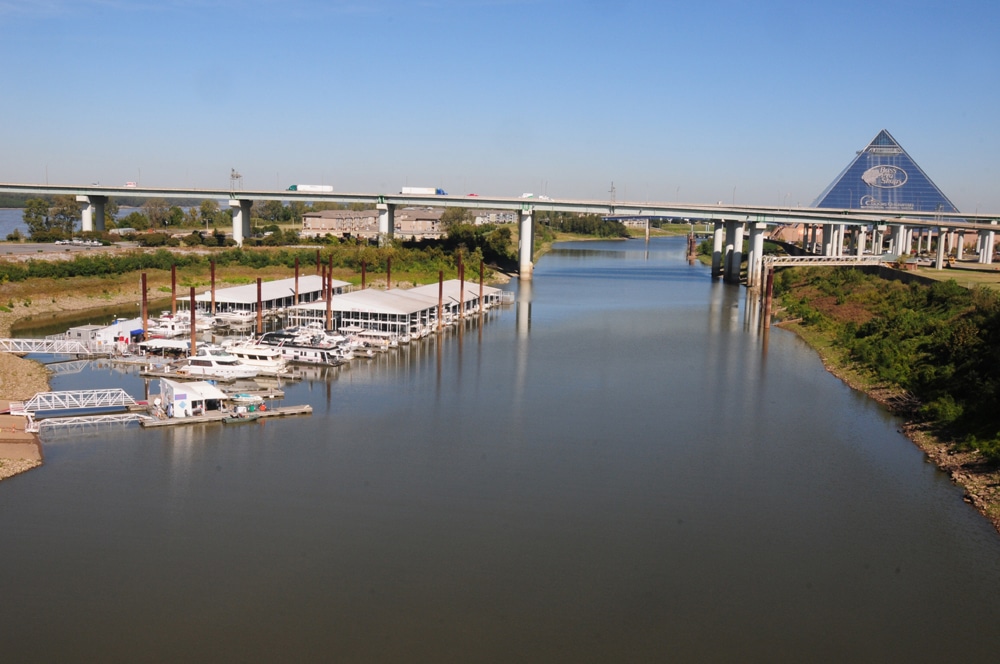 הפירמידה של ממפיס (המשמשת מרכז קניות) והגשרים על המיססיפי